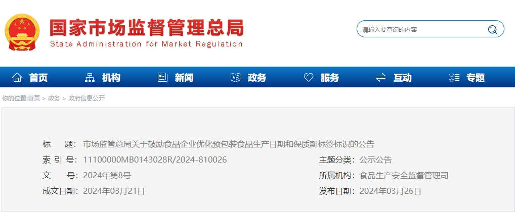 市場監管總局關于鼓勵食品企業優化預包裝食品生產日期和保質期標簽標識的公告